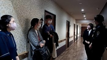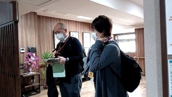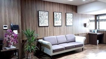 エレベーターを降りた2階はホテルのロビーのよう ナースステーションケアステーションが右手側にありますが老人ホームには 見えません さあ 見学会スタートします