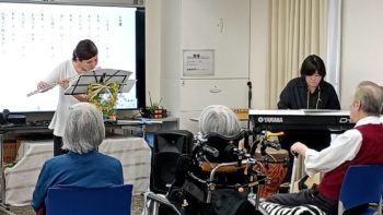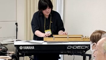 キーボード担当のこの方 民謡 「花笠音頭」では 大正琴までご披露され いつの間にか みんなそれぞれ楽器を持たされ合奏する事になりました 触れたことのない楽器から出る音にビックリ!! みんなで一曲奏でると 親近感さえ湧いてくるから 不思議・・・